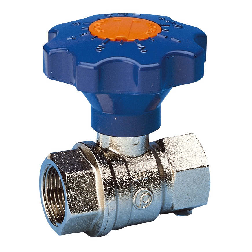 Kraftig kuleventil med DIN gjenger og TEA overflatebehandling. Muffe/muffe. Med girhåndtak for utveksling.