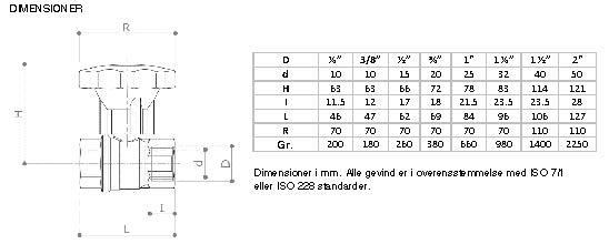 Kraftig kuleventil med fullt gjennomløp og DIN gjenger. TEA overflatebehandling. Muffe/muffe. Med girhåndtak for utveksling.