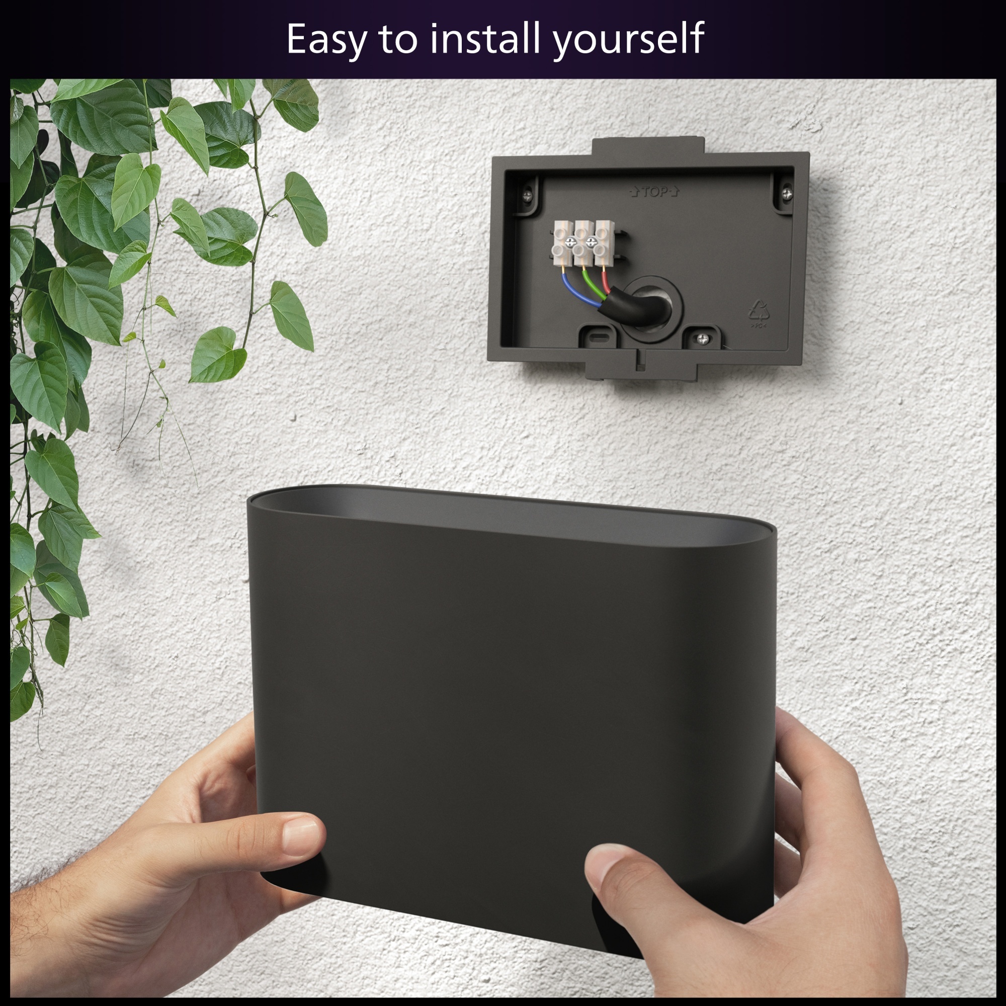 Lampen leveres med et feste som gjør oppsettet enkelt. Du trenger bare å montere bakplaten på veggen, koble den til strøm og koble til selve lampen. Merk at en Hue Bridge er nødvendig for å bruke Dymera vegglampen utendørs.