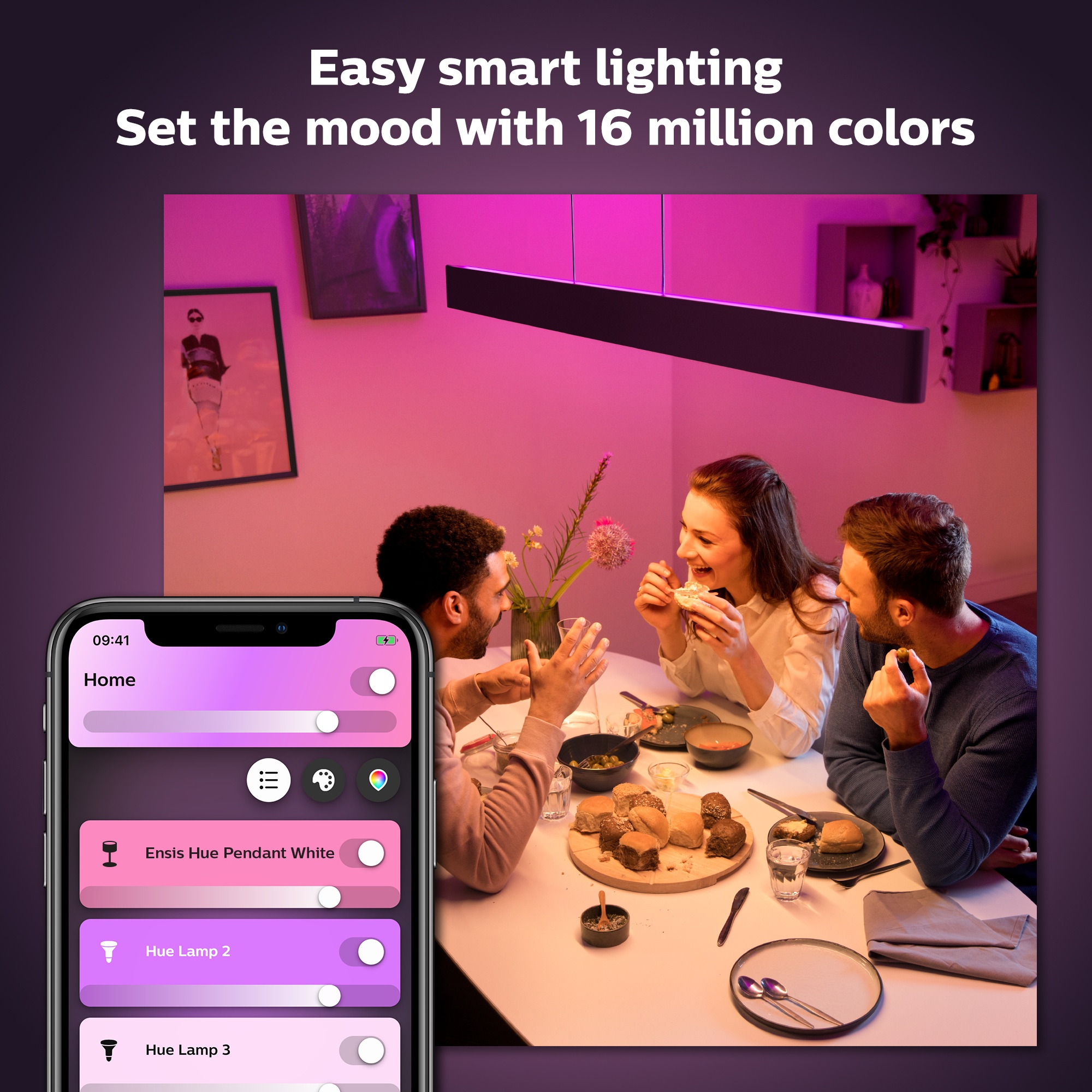 Philips Hue Ensis pendel i svart. Intelligent belysning med farget og hvitt lys (2000-6500 Hue White Color Ambiance). Zigbee og Bluetooth.