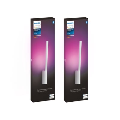 Slank og elegant: Philips Hue Liane vegglampe i hvit. Skap stemning med farget eller hvitt lys. Betjen via Bluetooth eller Hue Bridge. Høyde: 55,8 cm.