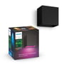Philips Hue Resonate utendørs vegglampe i svart. Skap stemning med farget lys. Krever Hue Bridge. IP44 godkjent. Mål: 12 x 12 x 9,3 cm.
