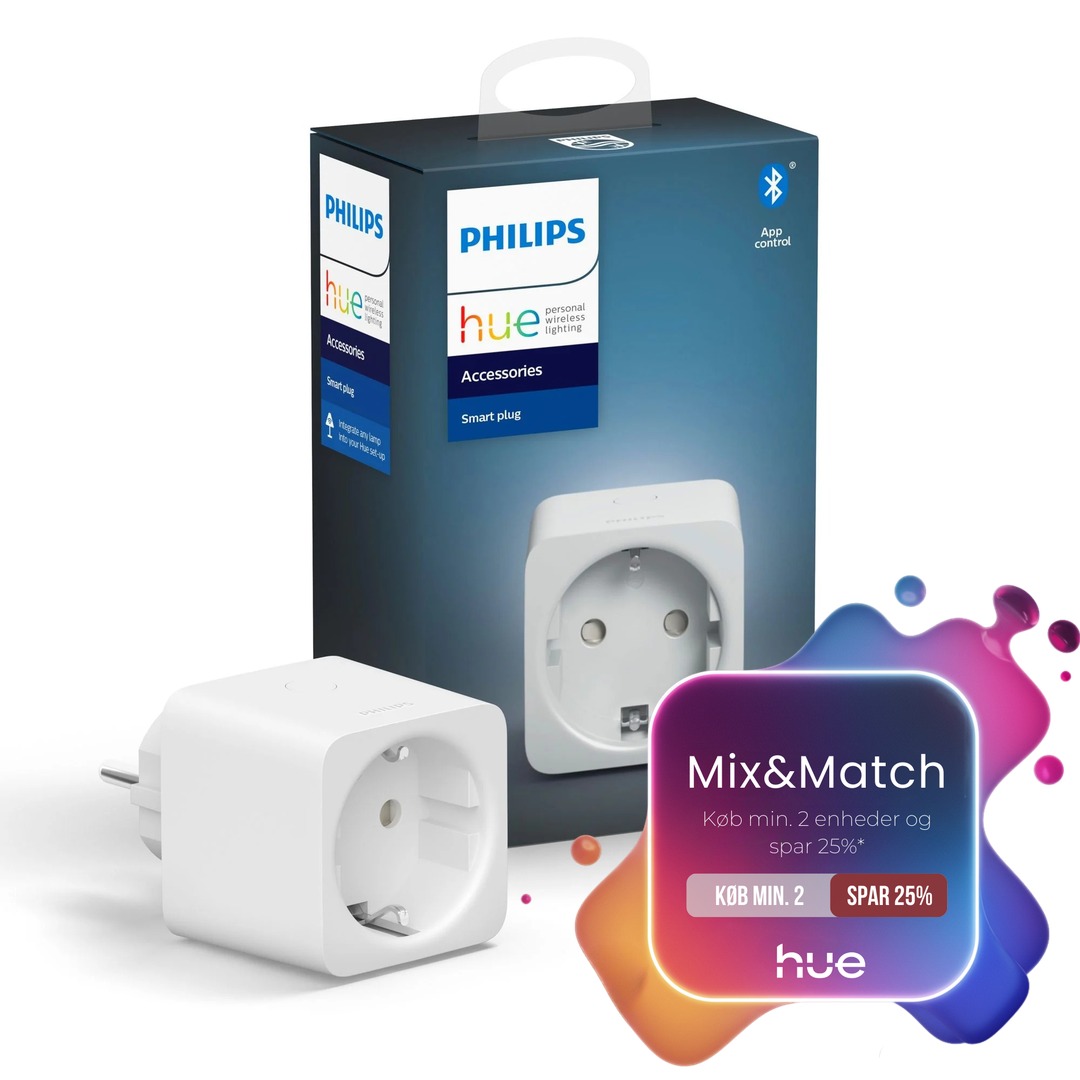 Philips Hue Smart Plug kan trådløst slå av og på stikkontaktene dine via Hue-appen. Hue Smart Plug kan også fungere som timere.