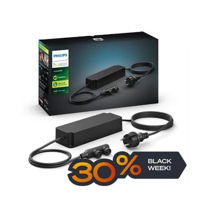 Philips Hue 100W strømforsyning for utendørs bruk. Enkel å installere og utvide. Vanntett og ideell for hagen eller terrassen.