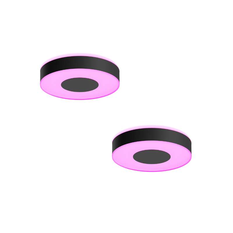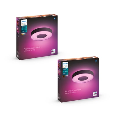 Philips Hue Xamento taklampe i sort, designet for baderommet. Med White and color ambiance kan du tilpasse lyset med 16 millioner farger og justere styrke og temperatur. IP44-klassifisert for vannsprut.