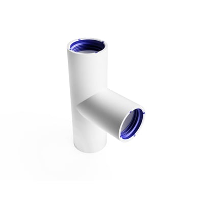Grenrør 90° T-stykke, Ø32 mm i plast med 3 muffer og gummipakning. Rask og sikker installasjon. Typegodkjent.