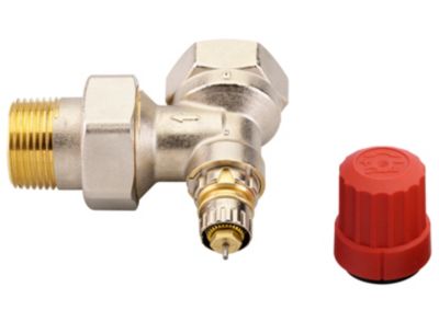Danfoss RA-N radiatorventil med forhåndsinnstilling. Vinkelløpende, 1" til 2-strengsanlegg. Sikrer optimal vannfordeling.