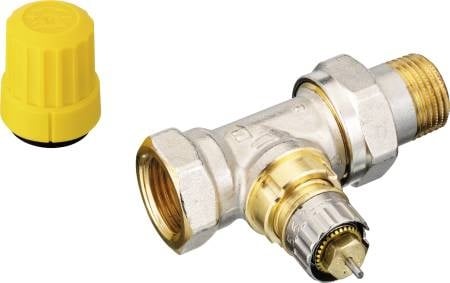 Danfoss RA-U ventilhus i messing for 2-strengsanlegg, 1/2" rettløpende med integrert forhåndsinnstilling for optimal vannfordeling.
