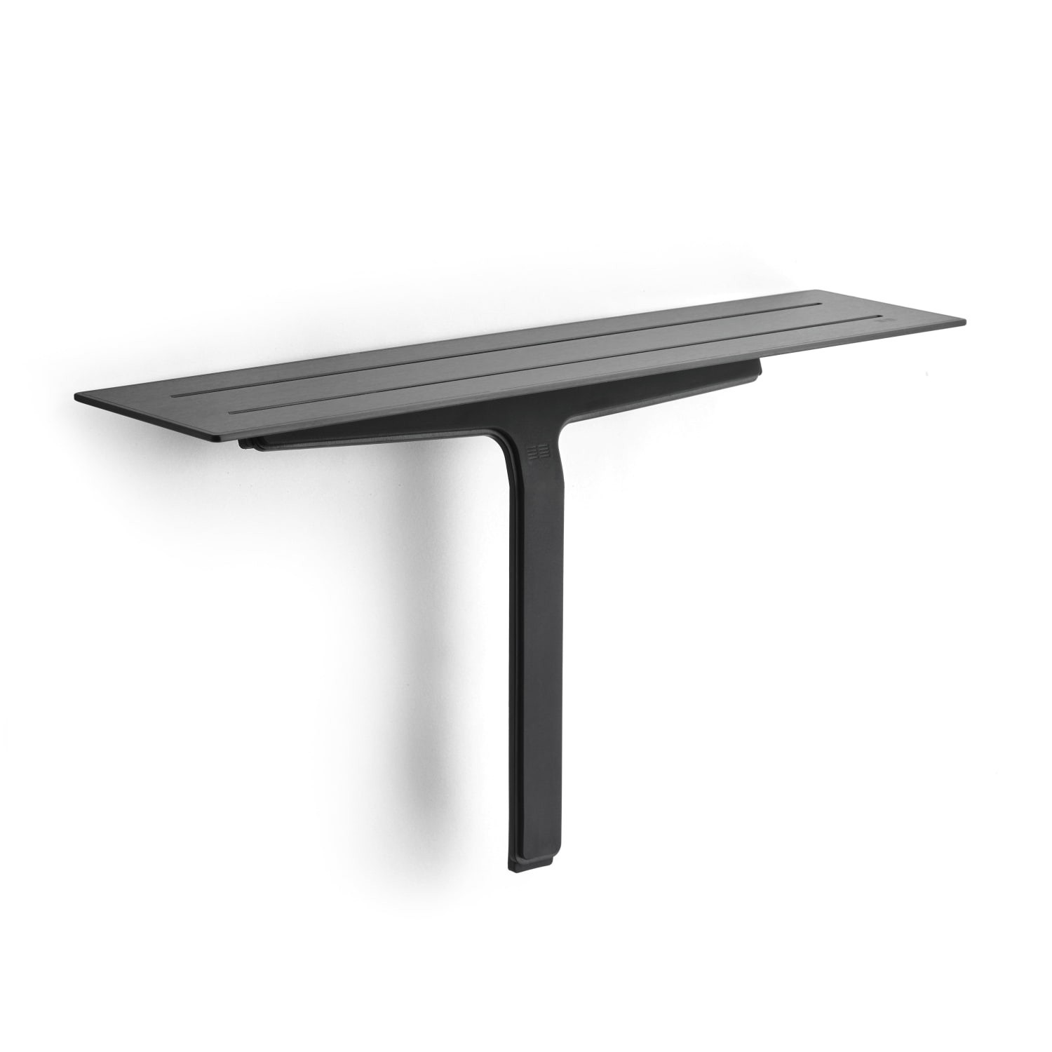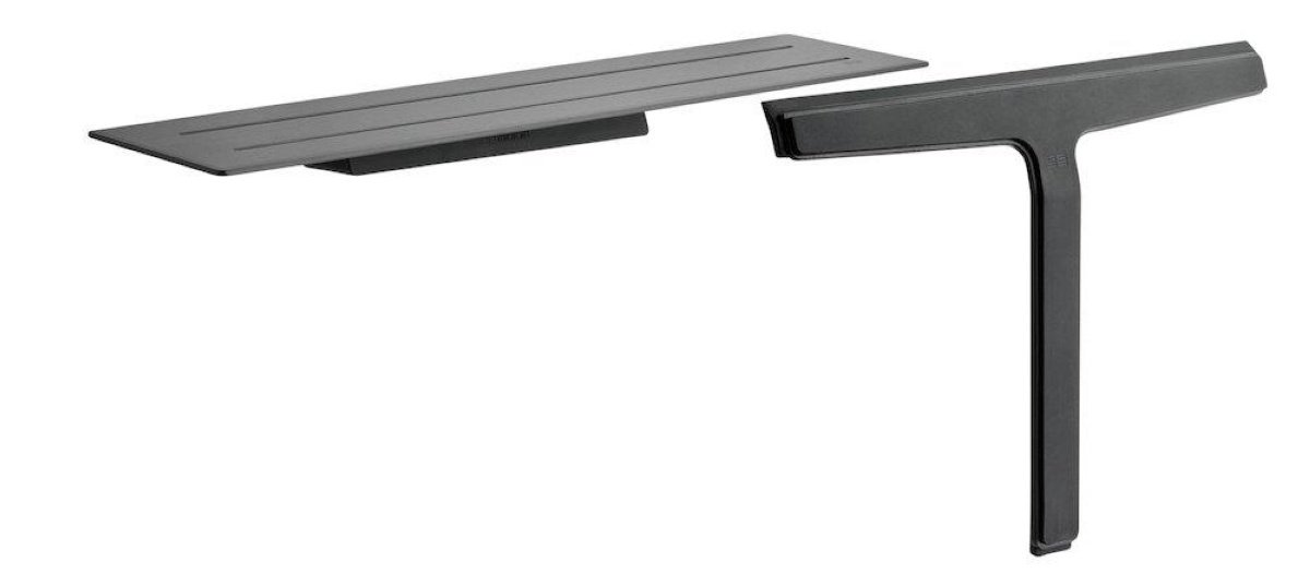 Hylle med integrert, magnetisk dusjskraper. Forsterket stålplate for økt stabilitet. Tynne riller leder vannet vekk og en anti-skli barriere holder tingene på plass. Skjulte magneter gir dusjskraberen en smart og diskret plassering.