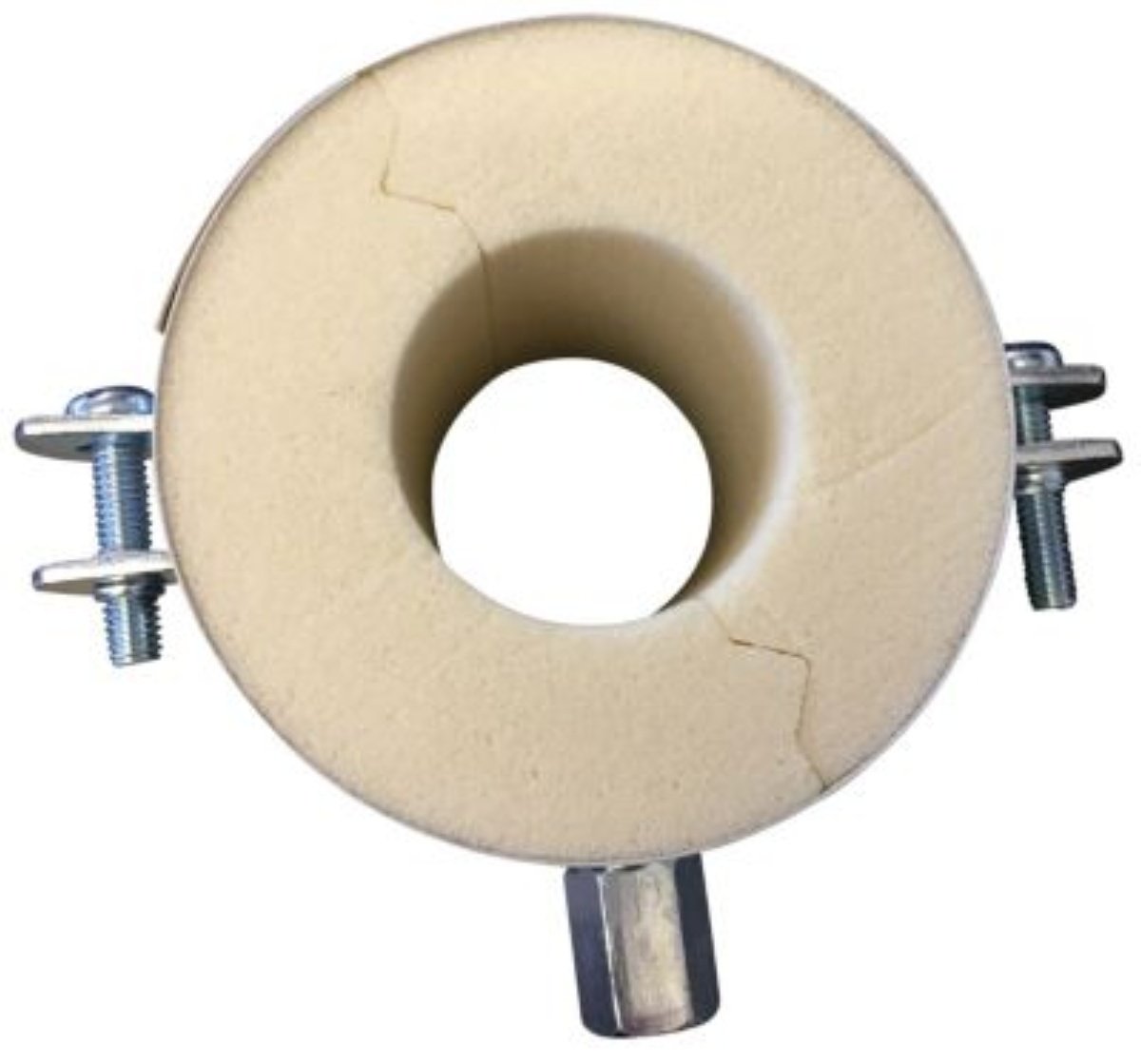 Isolert røroppheng med 2 PIR-elementer kledd med grå PVC-folie og selvklebende overlapp. Brukes til varme- og tappevannsinstallasjoner. Oppfyller isolasjonsnorm DS 452.