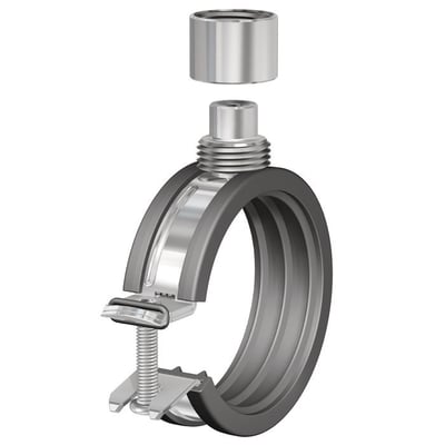Universell rørbøyle fra Flamco med lyddempende gummibånd for montering av rør på vegg eller tak. Passer til rør med en diameter på 19-22 mm.