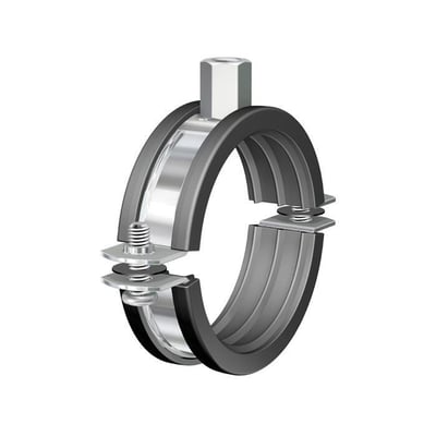 Flamco BSH rørbøyle med lyddempende gummibånd for sikker montering av rør på vegg eller tak. Passer til rør med en diameter på 108-116 mm.