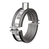 Flamco BSI universalrørklemme med lyddempende EPDM-gummibånd. For montering av rør på vegg eller tak. Temperaturbestandig fra -40 °C til +120 °C.