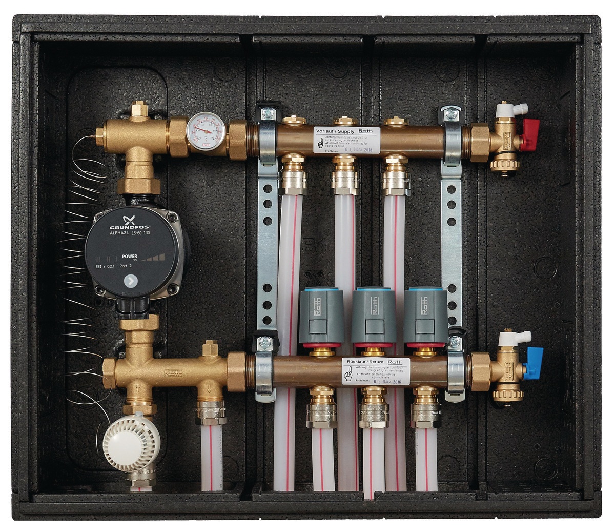 Roth isolasjon for gulvvarmeshunt. Passer til shuntunit med 3 avgreninger. Kan forlenges med isolasjon til fordelerør, VVS nr. 401973.890. Dimensjoner: 480x560x160mm. Farge: Svart.