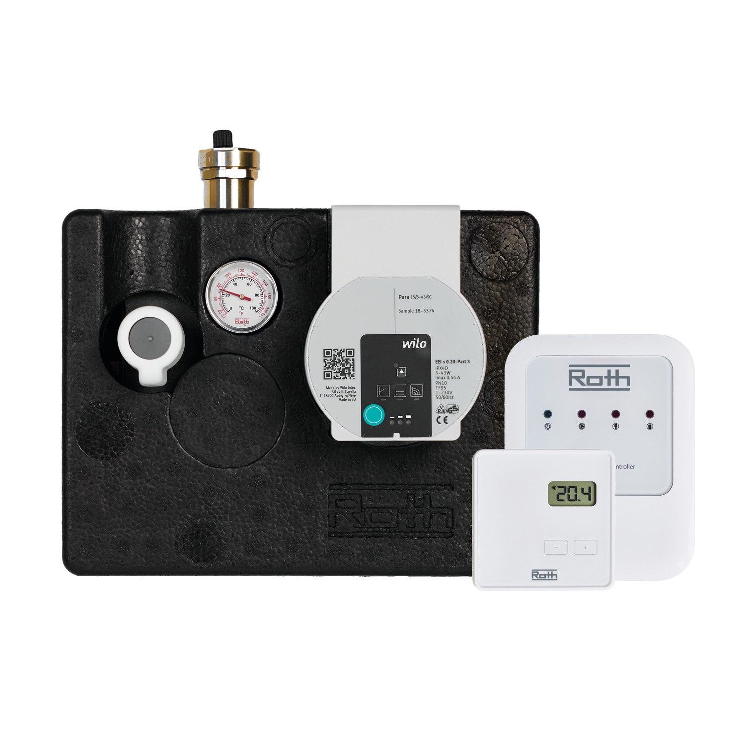 Roth Minishunt Plus med trådløs regulering for mindre gulvvarmeanlegg. Perfekt for baderommet eller små tilbygg der et mindre gulvvarmesystem skal kobles til et eksisterende varmeanlegg.