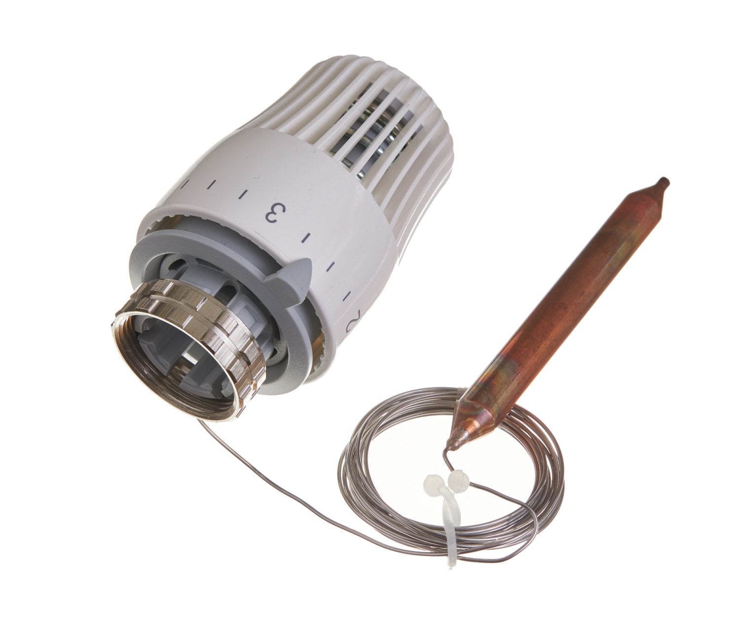 Original Roth termostat, som fungerer som en reservedel for Roth shunter, VVS-nr. 466210.040 og 466210.218. Produsert i plast og kobber med et temperaturområde fra 25°C til 65°C.