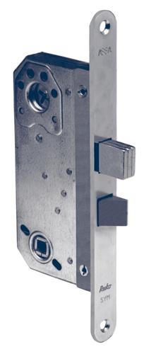 Modullås for ytterdører i butikker, fabrikker og villaer. Med tvangsstyrt rigel og vendbar falle.