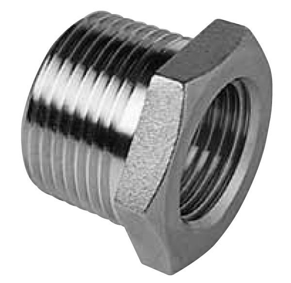 Rørgjengefitting av rustfritt stål (AISI 316). Består av en utvendig gjenge som har en konsentrisk innvendig gjenge inni. Hylsen er redusert i forhold til nippelen.