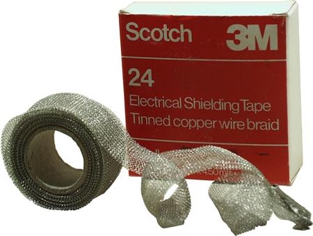 Scotch 24 skjermtape er en flat, vevd metallskjermtape for alle typer kabler med skjerming. Enkel å forme og strekke. Rull på 25 mm x 4,5 meter.