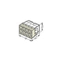 WAGO Serie 2273 skrueløs samlemuffe med 8 huller i lysegrå og klar plast, designet for 0,5-2,5 mm² stiv ledning.Teknisk tegning af WAGO Serie 2273 samlemuffe med mål angivet for bredde, dybde og højde.WAGO Serie 2273 samlemuffer i brug med stive, flerfarvede ledninger koblet, demonstrerer effektiv samling.