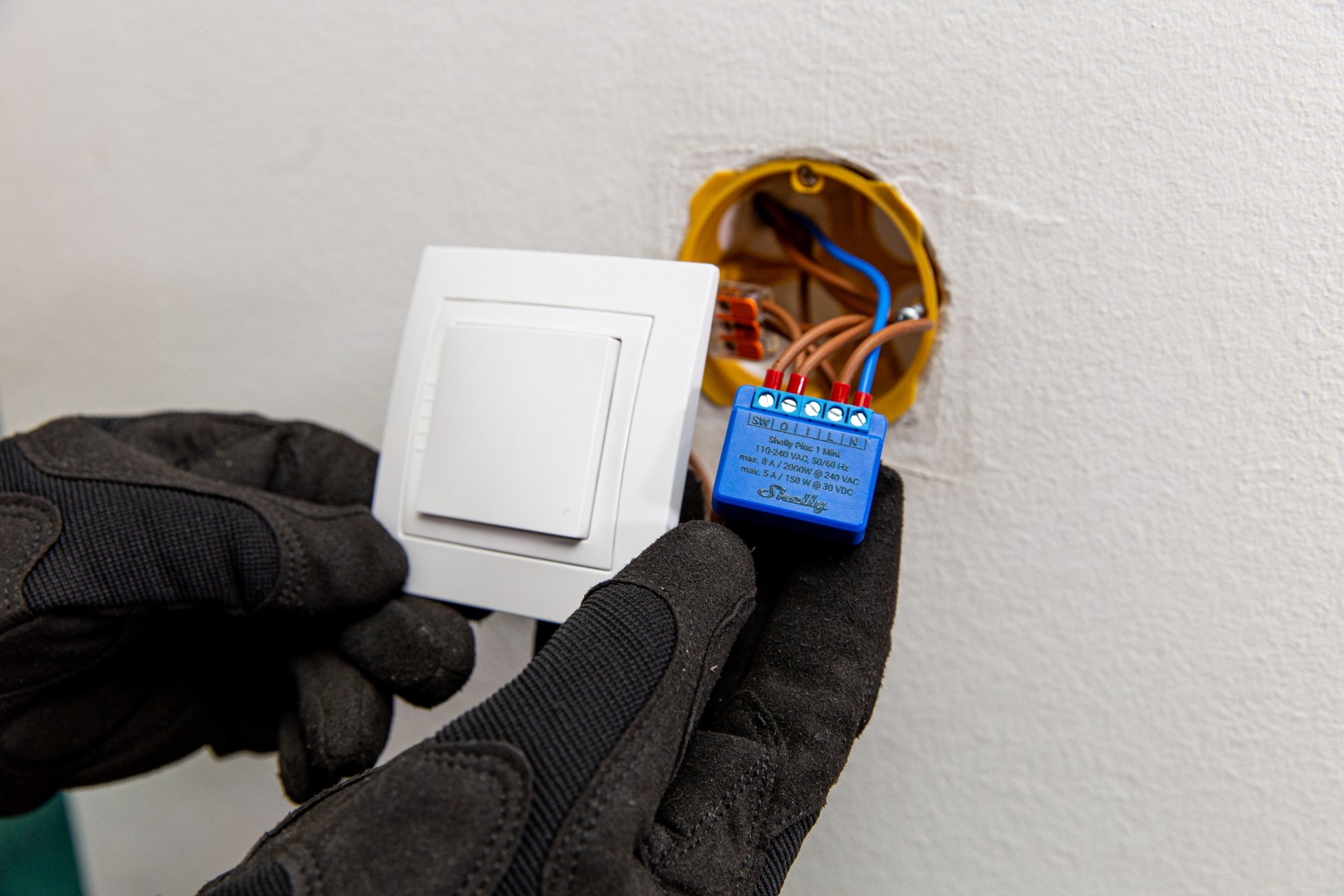 Shelly 1 mini kobles enkelt til ditt lokale WiFi-nettverk på 2,4 GHz. Den har også innebygd Bluetooth, noe som gjør den kompatibel med andre Shelly Bluetooth-enheter og kan fungere som en gateway. Alle Shelly-enheter fungerer lokalt uten behov for Shelly Cloud, men for økt funksjonalitet og datalagring anbefales det å aktivere skytjenesten. Enheten støtter også kommunikasjon via MQTT, HTTP og WebSocket, alle med TLS.Maskinvare og ytelse