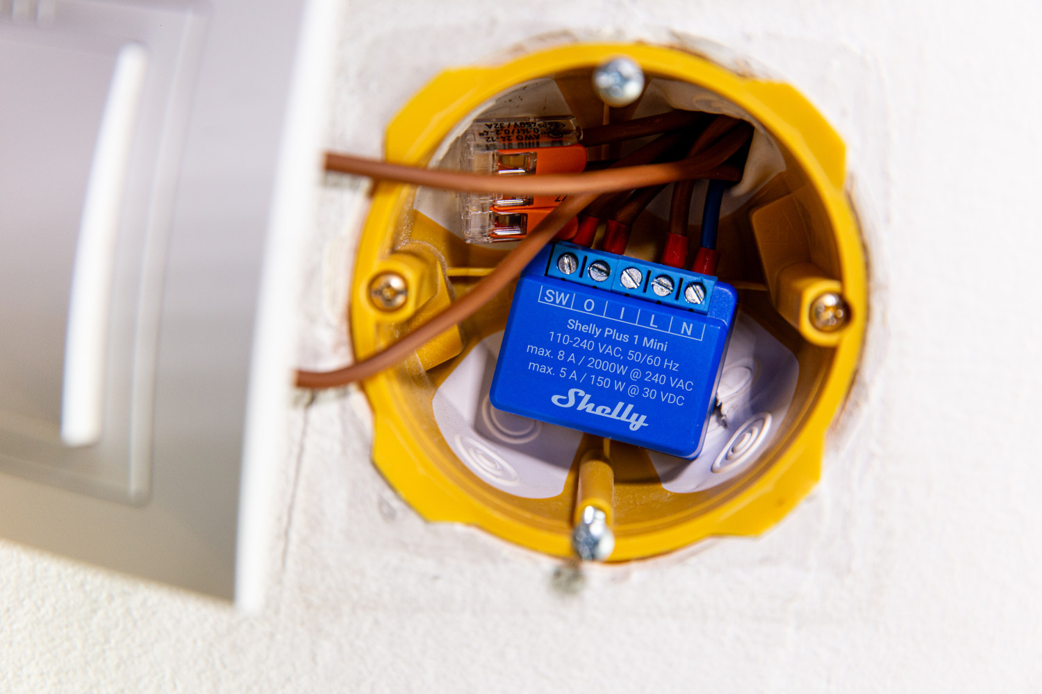 Shelly 1 Mini (gen 3) er et lite WiFi-styrt 1-kanals 8A relé. Perfekt for automatisering av lys, garasjeporter og mye mer. Passer i de fleste vegg- og takbokser.