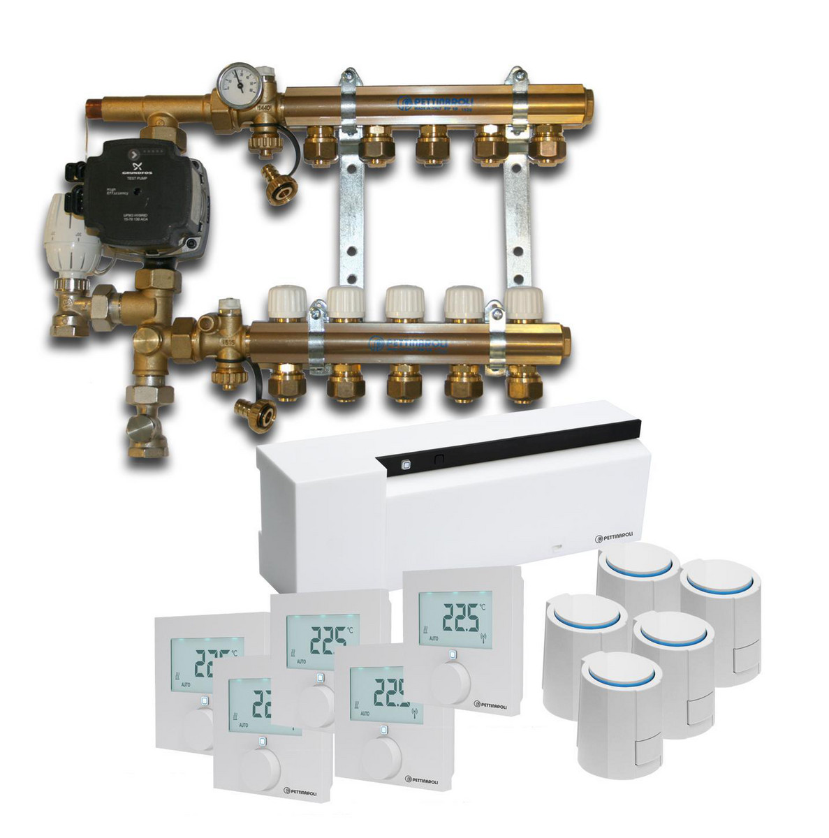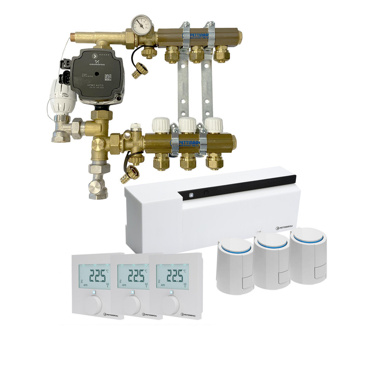 Denne pakkeløsningen fra Pettinaroli inneholder alt du trenger for å installere og styre gulvvarme i opptil 3 soner. Systemet er samlet og pakket i en eske, noe som gjør installasjonen rask og enkel.