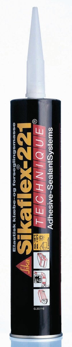 Sikaflex-221 er egnet som fugemasse og som lim til enkle sammenføyninger. Da den er elastisk, virker den både vibrasjons- og støydempende. Sikaflex-221 har god vedheft på: Tre...