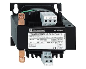 Hager sikkerhetstransformator Un primær: 230VAC, Un sekundær: 12-24VAC Ytelse: 16-63VA. Alle transformatorer er termisk overbelastnings- og kortslutningsbeskyttet.