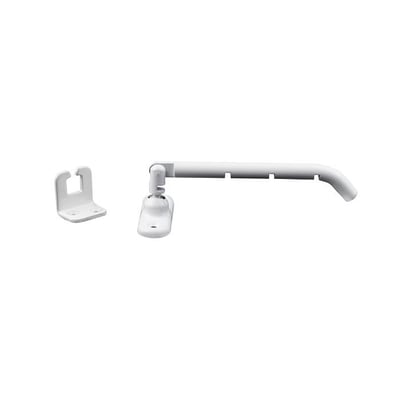 Hvit sikringsbeslag til topp- og sidehengte vinduer i hvit.