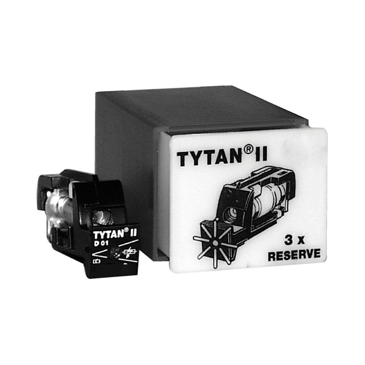 Dette komplette magasinet er designet for Tytan II gruppeavbrytere og inneholder 3 sikringsskuffer med en merkestrøm på 6A hver. Magasinet er konstruert for enkel installasjon og vedlikehold, noe som gjør det til en praktisk løsning for sikring av elektriske installasjoner.