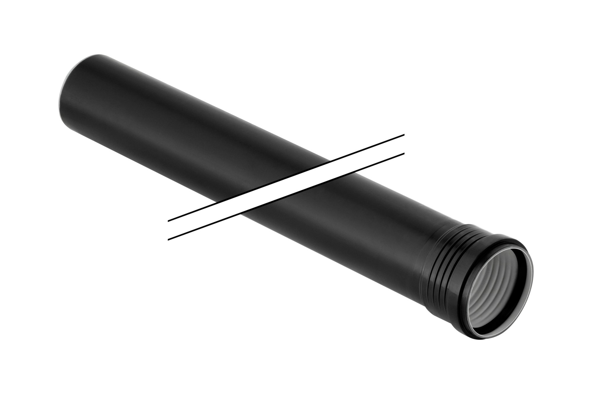 Røret er udstyret med 1 muffe, som forenkler monteringen og sikrer en tæt forbindelse. Den sorte farve bidrager til et diskret udseende, der passer ind i de fleste tekniske installationer.