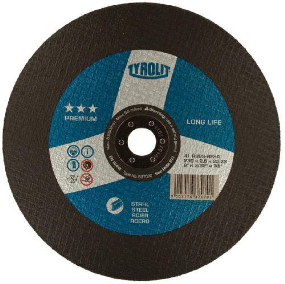 Høytytende PREMIUM*** LONGLIFE kappeskive for stål. Egnet for plater, profiler, rør, stenger og massivt materiale. Tilbyr lang levetid og stabilitet.