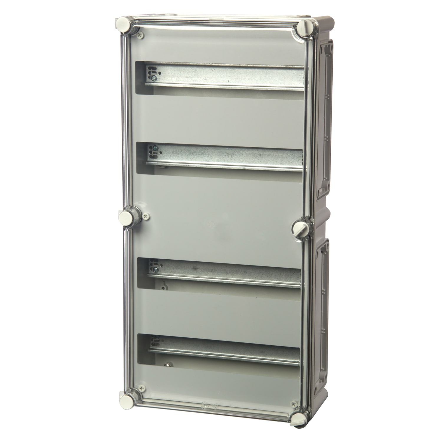 Denne DIN-skinnekassen THTD-4 er designet for å gi en sikker og organisert installasjon av elektriske komponenter. Med plass til 4 x 14 moduler er den ideell for et bredt spekter av applikasjoner hvor det kreves en robust og beskyttet løsning for DIN-skinneutstyr.