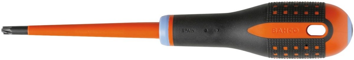 "Slim blade" skrutrekker utviklet i henhold til Bahcos ERGO™-program. Isolert kombiskrutrekker for Pozidriv- og Flatspor i samme spor. For arbeid på emner med opptil 1000 V.