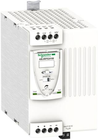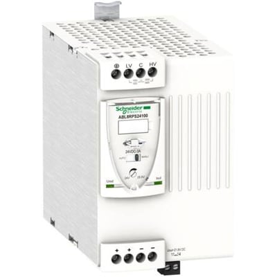Schneider Electric ABL8RPS24100 er en regulert switch-mode strømforsyning (SMPS) som leverer likespenning. Den er designet for å forsyne automasjonssystemet ditt med stabil strøm, selv ved spenningsfall.