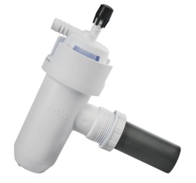 Spesialvannlås fra BWT for enkel installasjon av AQA basic, AQA life og BWT Perla-serien. Med tilkoblinger for avløpsslange, overløpsslange og rør.