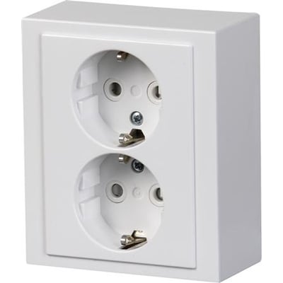 Stikkontakt med 2 uttak med barnesikring/pillesikring og mulighet for tilkobling av bruksgjenstander opp til 16A (1 fase).