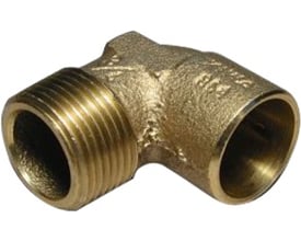 Lodde fitting av kobber. Har muffer i begge ender og avgreningen. Avgreningen er vinklet 90° i forhold til hovedrøret.