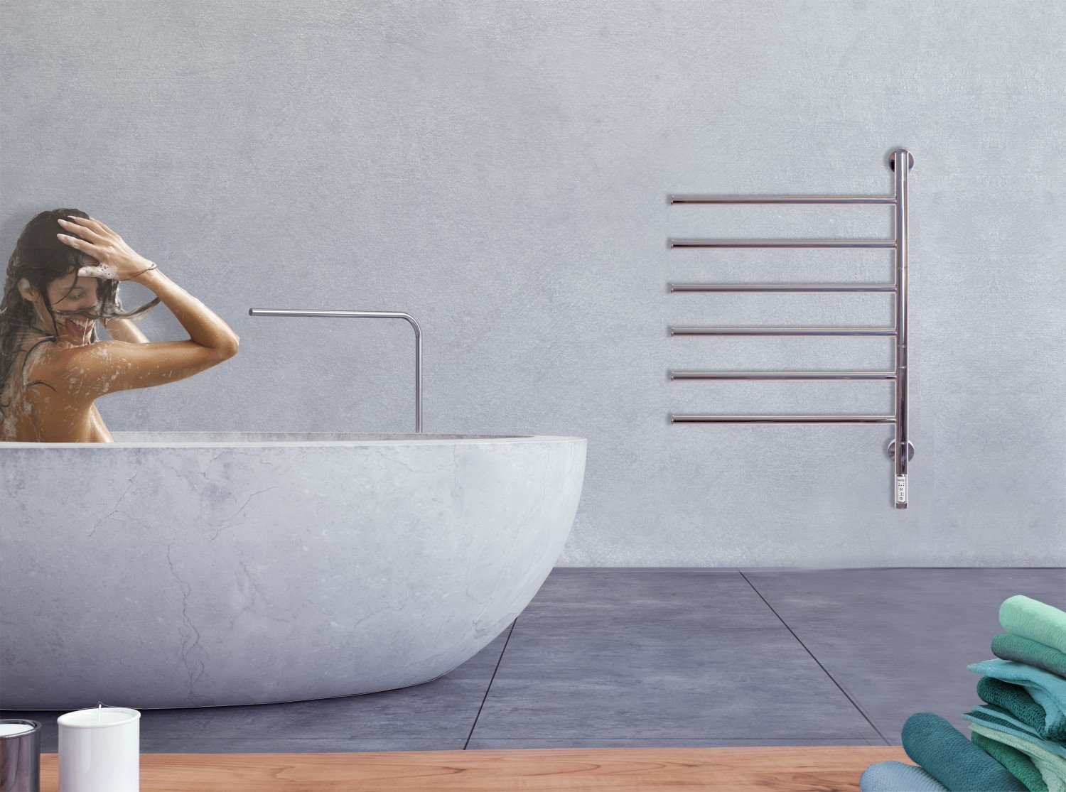 Med sine 6 svingbare armer, fordelt på 3 par, tilbyr håndkletørkeren fleksibel anvendelse og god plass til flere håndklær. De svingbare armene gjør det enkelt å henge håndklær opp og ta dem ned, samt å tilpasse tørkerens utforming etter behov.