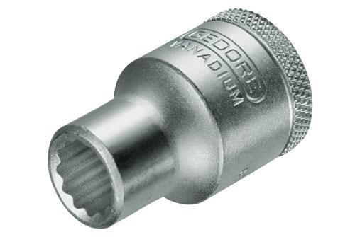 Gedore 1/2" pipehode med 12-kant profil og 11/16" dimensjon. Produsert i vanadiumstål med riflet grep og kromfinish.