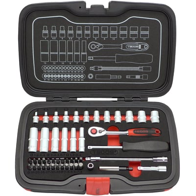 Dette pipesettet fra Tecos leveres i industrikvalitet og inneholder 48 deler. Pipene er laget av kromvanadiumstål, som er oljeavvisende, og bitsene er laget av S2 stål. Skrallen har pipeutløser, 72 tenner, et pæreformet hode og et ergonomisk sklisikkert håndtak.
