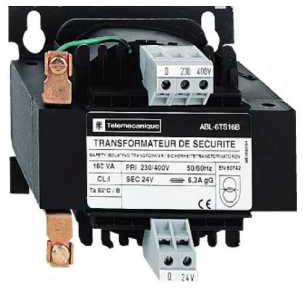 ABL6 transformator leverer vekselstrøm til styrekretser og isolerer dem fra strømnettet. Nominell inngangsspenning på 230 til 400Vac, nominell utgangsspenning på 230Vac og nominell effekt på 250VA.