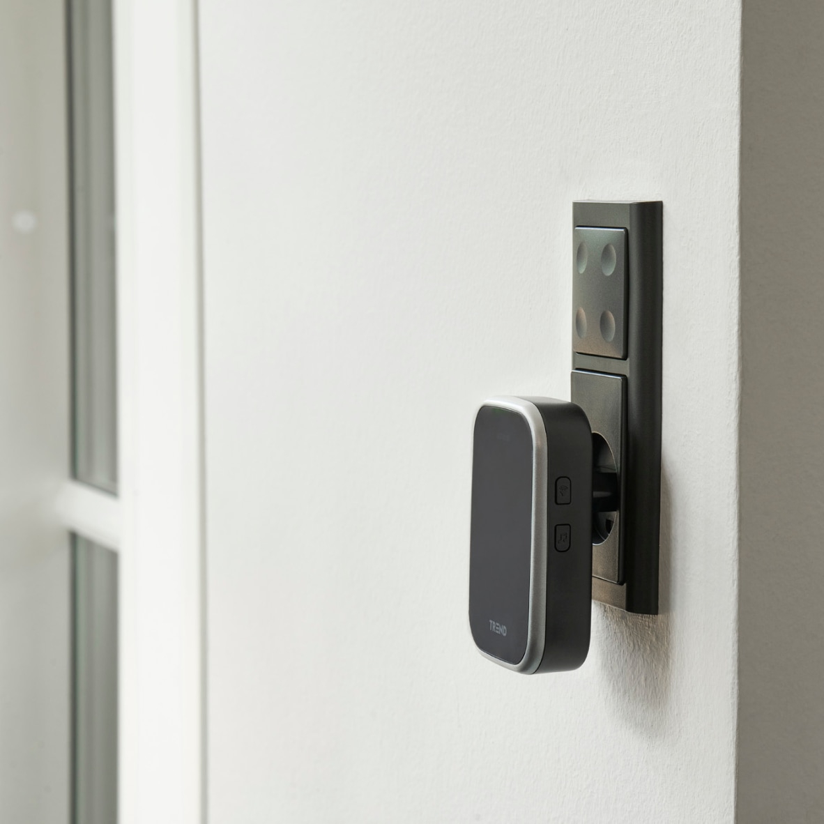 Dørklokken er designet for å kobles direkte til en stikkontakt (plug-in) og kan utvides med ekstra dørtrykk og klokker etter behov.