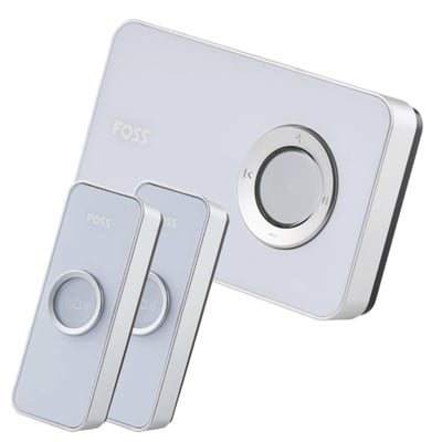 Trådløs TREND dørklokke med 2 trykk og 150m rekkevidde. Velg selv ringelyd og nyt designet i hvitt.