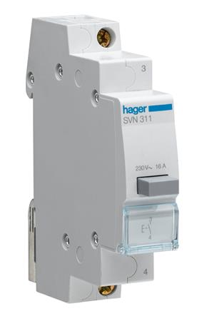 Hager trykkbryter for betjening av styrefunksjoner direkte fra eltavlen. 1 modul à 17.5 mm. Merkestrøm: 16A AC12. Merkespenning: 250VAC.