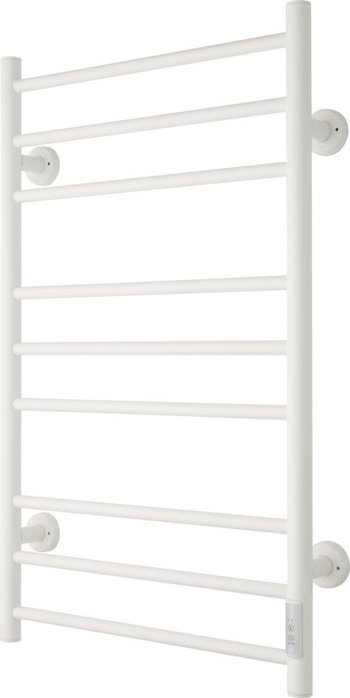 Eldo 9 elektrisk håndkletørker med timer. Hvit overflate, 860x530 mm. Krever ingen væske eller ekstra tilbehør.