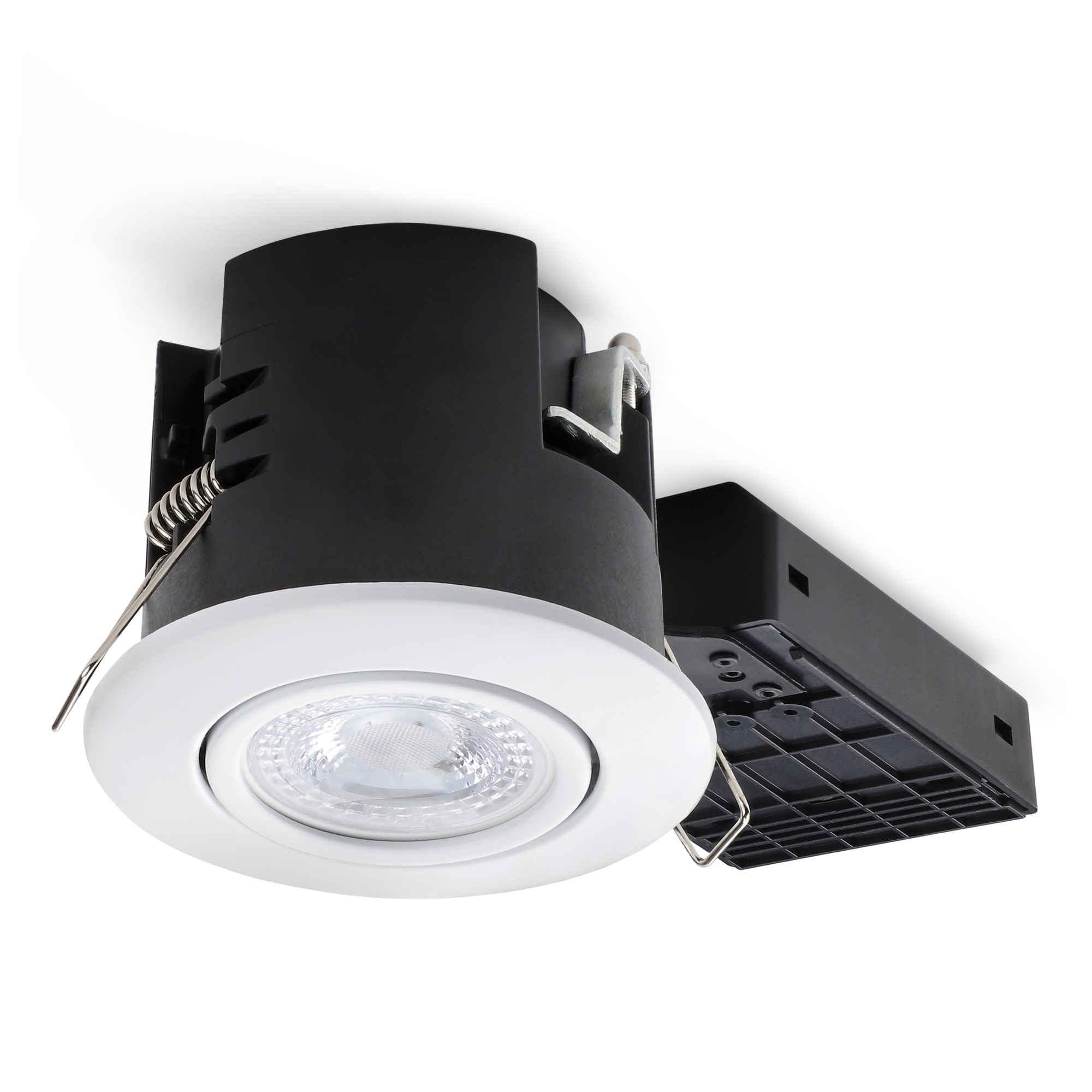 Uni Install G2 downlight, inkl. LED-pære (Nordtronic Long Life / CRI>90 FlickerFree / 5W / 360lm / 38° / 3000K / dimbar<1%), GU10 (230V), rund, hvit (matt) – Nordtronic