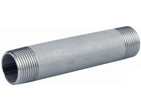 9. Rustfrit (AISI 316) nippelrør på 120mm med 1" udvendigt gevind i begge ender, egnet til varmeanlæg.Rustfritt (AISI 316) nippelrør 120 mm, 1" x 1"