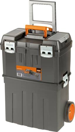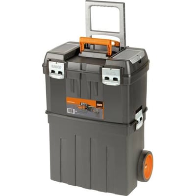 Robust verktøytrolley fra Bahco, ideell for oppbevaring og transport av verktøy under ekstreme forhold. Med kraftige metallåsbeslag og hjul.